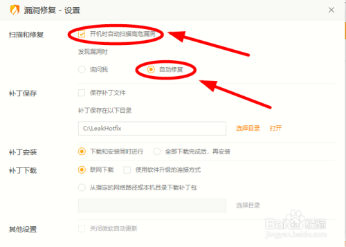 在弹出的【缝隙修复-设置】页面,勾选【开机时主动扫描高危缝隙】后,再勾选【主动修复】即可