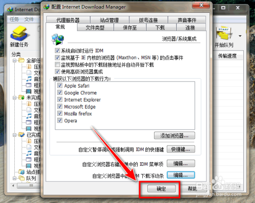 4.点击“自界说浏览器中的IDM下载浮动条”右边的编纂按扭