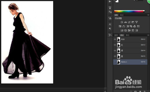 - 选择窗口通道面板,然后按住ctrl键同时,单击建立好的alpha1通道,获得人物选区。