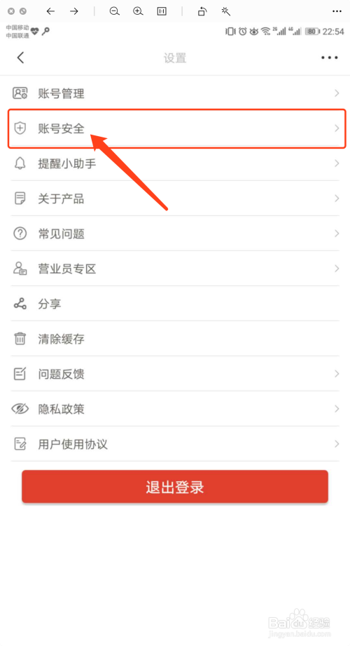 在【设置】页面,点击【账号平安】,如下图所示。