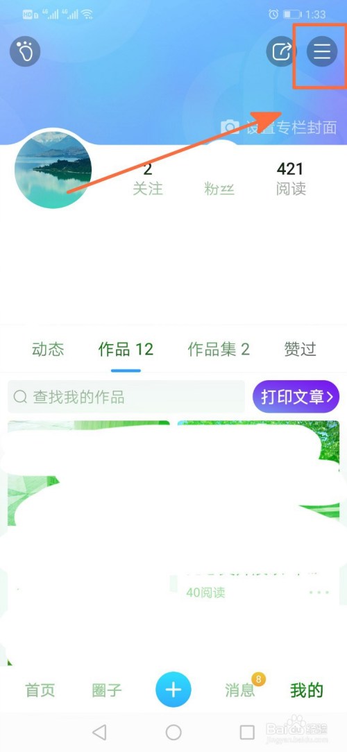 这时会看到小我中间页面,点击该页面右上角的菜单图标;