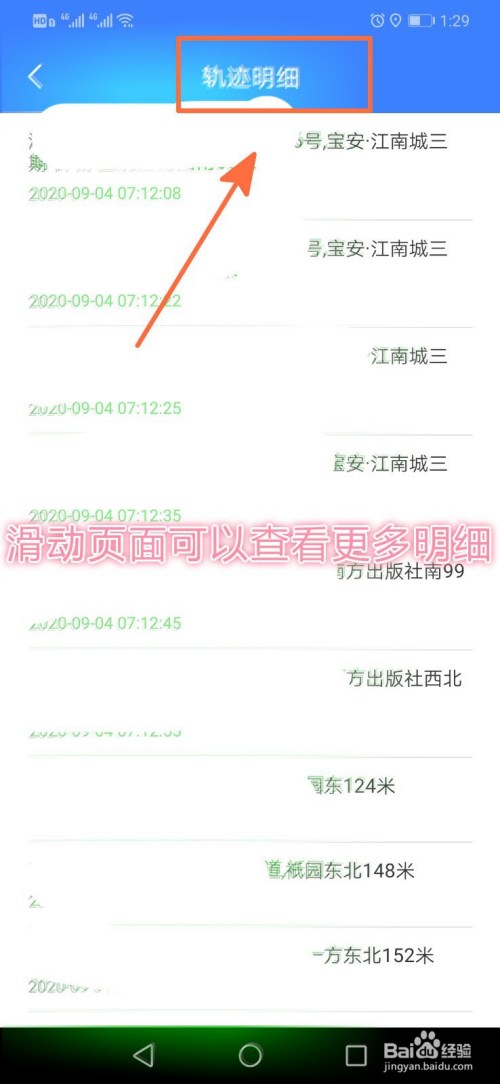 此时,我们即可看到车辆用车的轨迹明细了,可以经由过程滑动该页面开查看更多的明细。