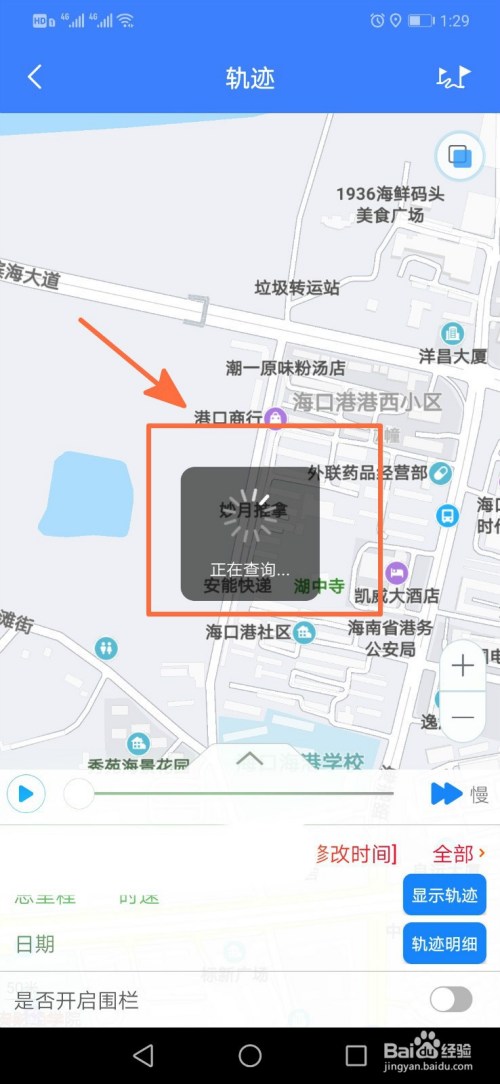 顿时最后一次用车的轨迹呈现在手机页面中,我们若想查看明细,则选择轨迹明细按钮即可;