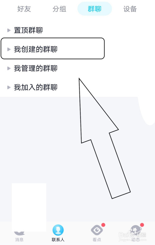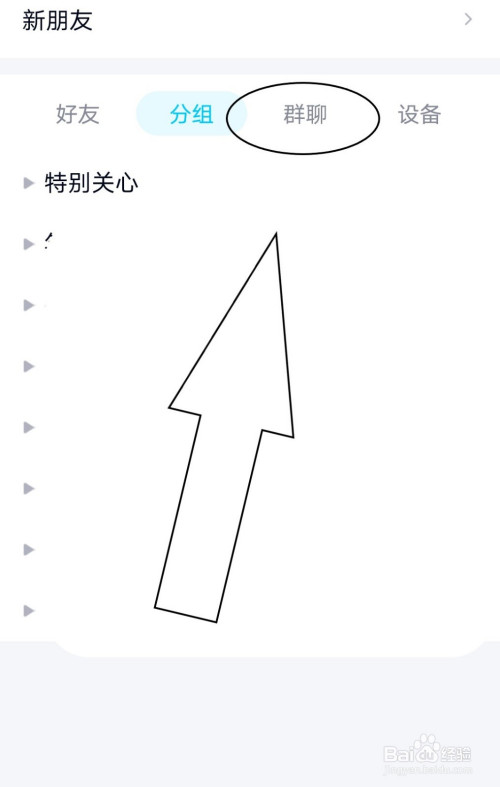 2.将显示页面由分组调整至“群聊”。