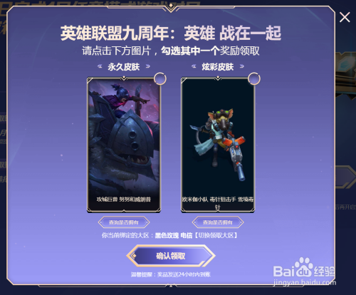 第五步最后勾选永远皮肤,点击确认领取即可。