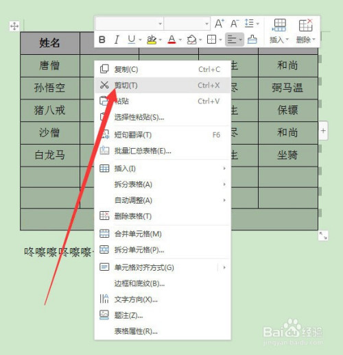 点击鼠标右键,调出右键菜单,然后鼠标左键点击剪切。