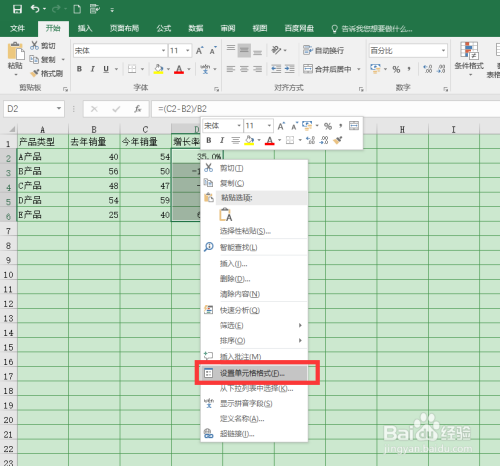 鼠标右键调出设置面板,选择【设置单位格格局】。