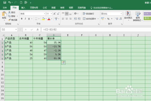 【1】打开Excel数据表格,输入增加率数据。