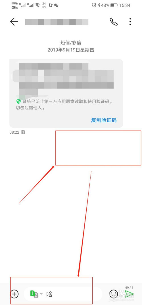 1、打开华为手机自带的短信软件