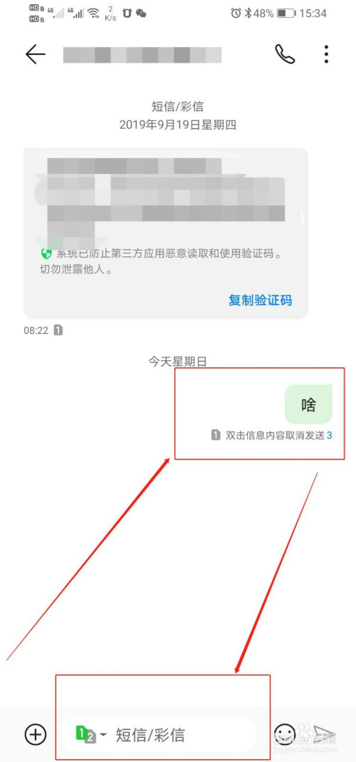 5、双击短信,即可打消发送;短信内容会回填到输入框中,即可从头编纂短信了