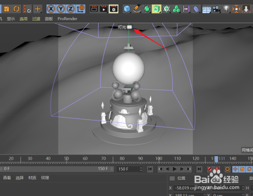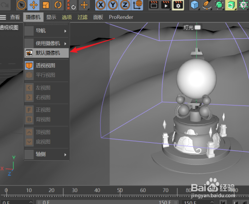 从工作区的提醒中可以看到,当前视图为灯光地点的视图。在这视图中,经由过程调整模子的视角来确定该灯光的位置。调整完后,选择默认摄像机即可回到摄像机视角。