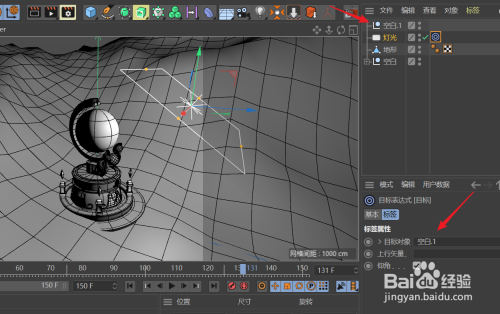 新建模一个空白对象,给灯光添加一个方针标签,将空白对象添加到方针标签 的对象中。这样调整空白对象即可调整灯光的照射角度。