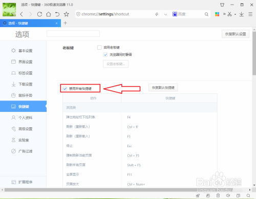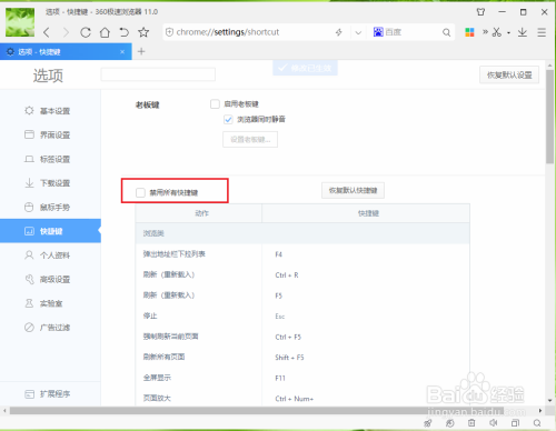 打消勾选【禁用所有快捷键】。