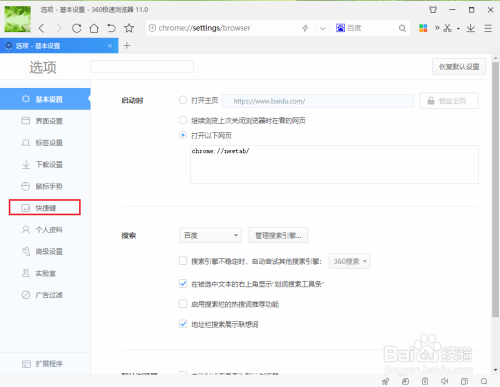 点击【快捷键】。
