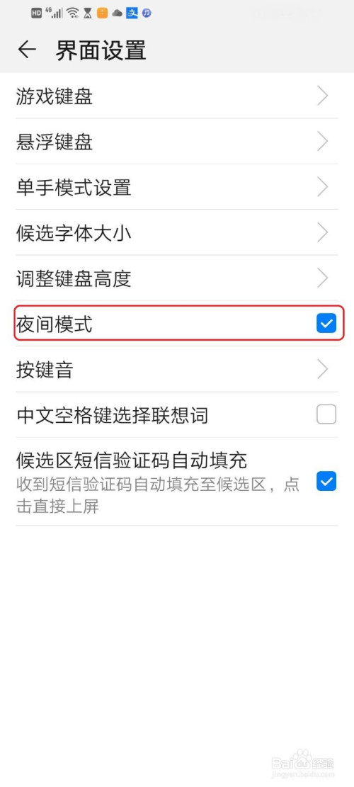 勾选【夜间模式】。