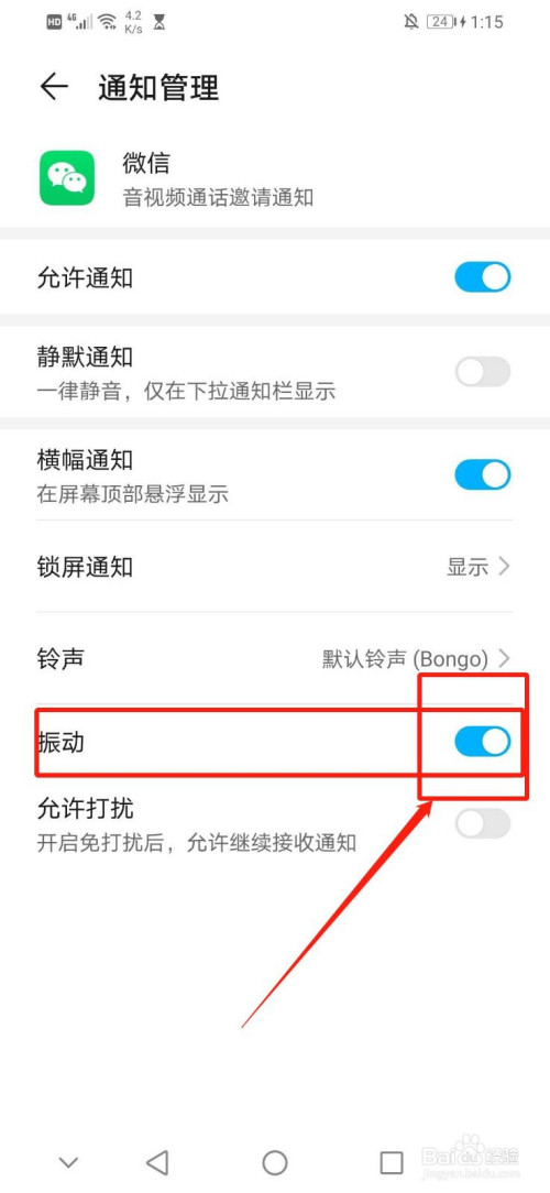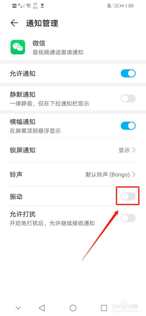 6.点击“语音和视频通话邀请”界面第六行的“振动”右边蓝色区域的白色圆圈