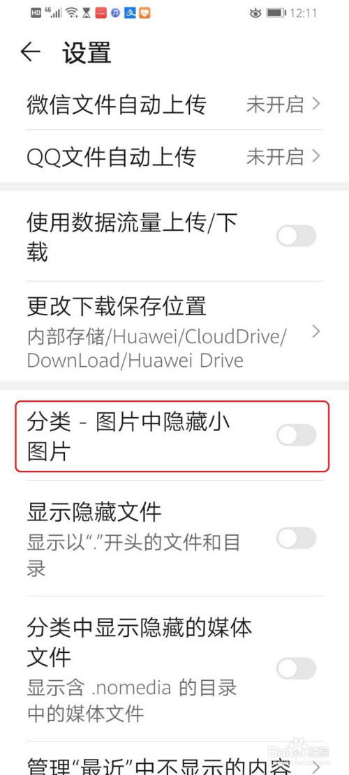 ●点击“分类-图片中埋没小图片”后面的开关。