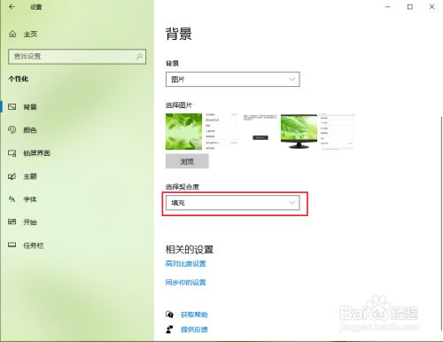 ●点击“选择契合度”下面的选框,在弹出的列表中选择“填充”。