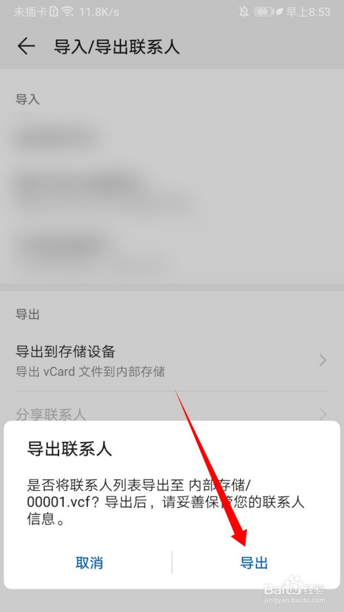 点击 导出,即可导出vcf格局到内部储存