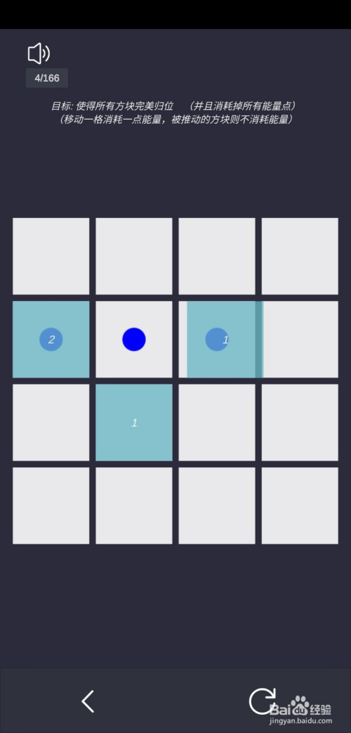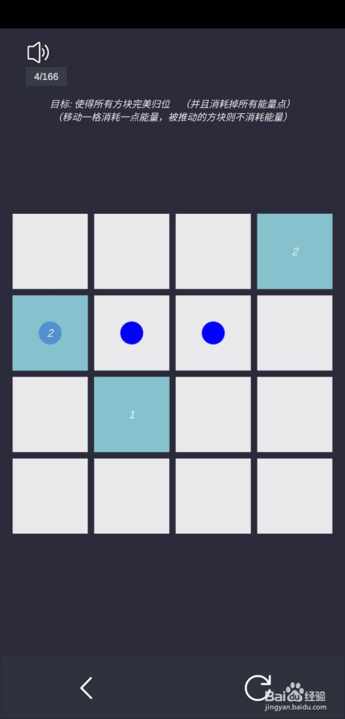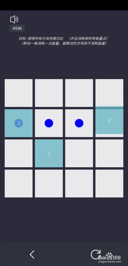 我们先移动右上角的方块,他有两格能量,正好可以移动到(3,3)位置。