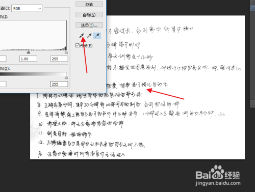点击CTRL+L,打开色阶,点击白色吸督工具,点击图片白色区域。