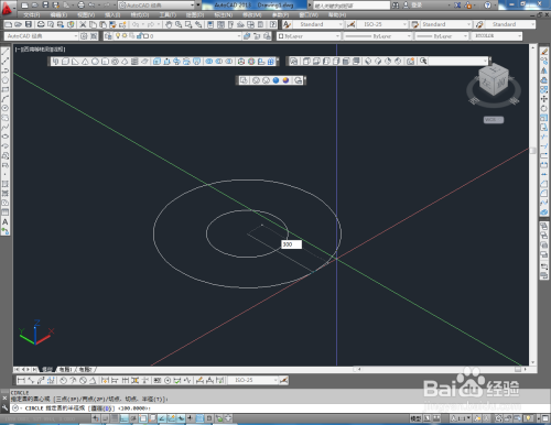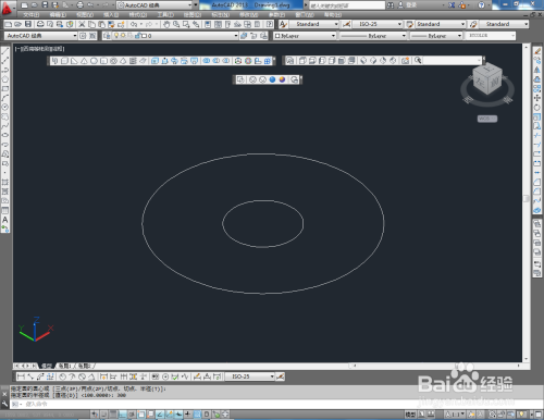 点击【圆东西】,按图示参数绘制出两个分歧半径的圆形图案并调整好圆形图案间的位置关系;