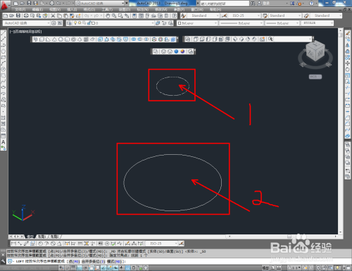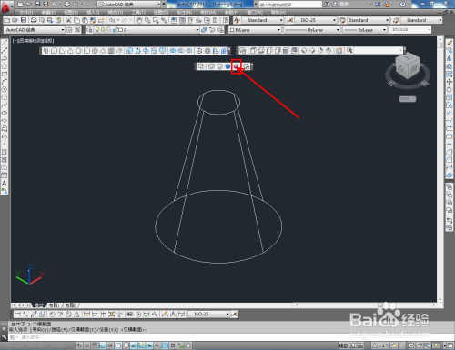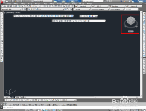 鼠标右键点击图示箭头所指区域,点击【AutoCAD】,依次勾选【建模】、【视图】以及【视觉样式】东西栏;