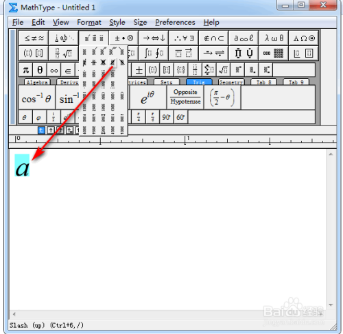 接着,选中步调3中的式子,并在菜单栏中,点击一个“空白”符号,具体如图所示:
