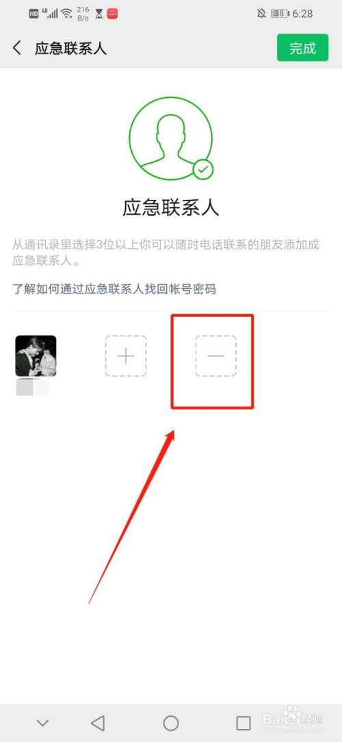 进入“应急联系人”界面后,点击“应急联系人”界面的“一”,如图