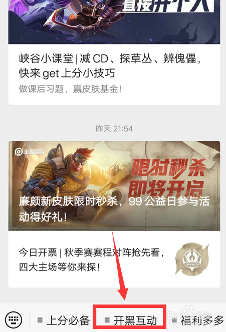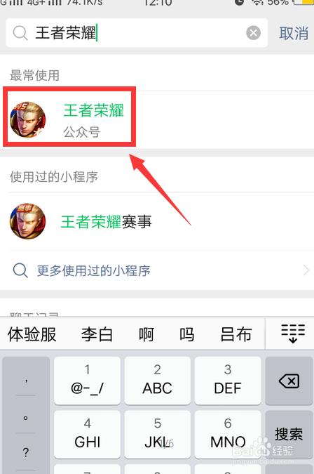 打开微信,搜刮王者荣耀微信公家号