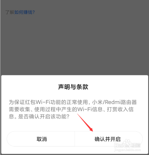 之后会呈现一则声明,点击“确认并开启”即可让自家Wi-Fi收费啦。