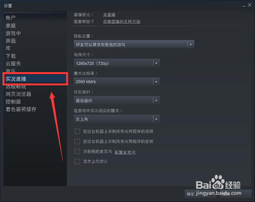 在软件设置界面的左侧,我们需要点击“实况直播”选项,进入直播设置界面。