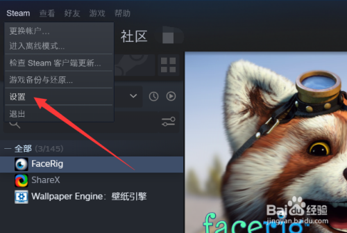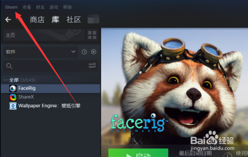 在软件界面的左上角,点击“Steam”按钮,点击后会弹出菜单。