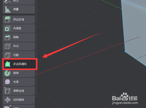 在编纂模式下,我们需要选择“多边形建形”东西,进行东西的利用。