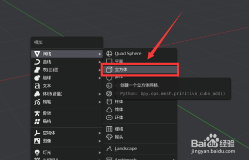 首先,打开Blender的界面,并按下shift+a快捷键新建一个立方体。