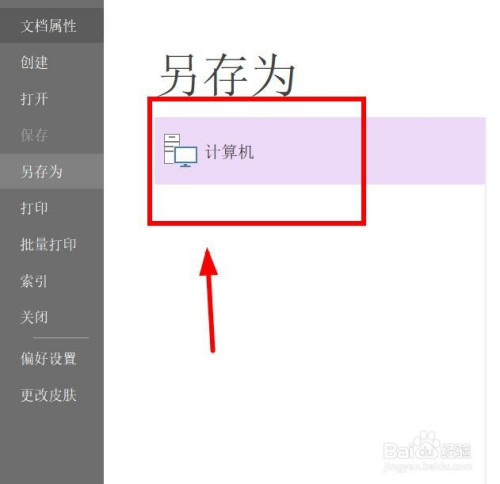 在“计较机”上选择文件导出的位置。