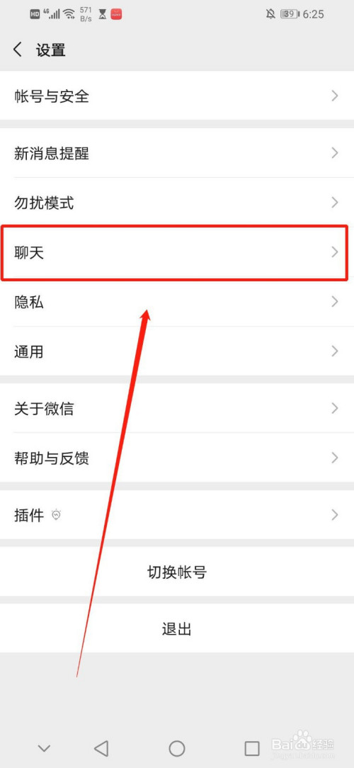 进入“设置”界面后,点击“设置”界面第四行的“聊天”,如图