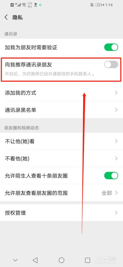 6.白色圆圈标的目的左移动且绿色区域酿成灰色区域的时辰暗示完当作不让微信保举通信录伴侣