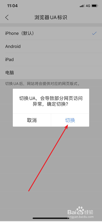 在弹出的提醒中,点击【切换】