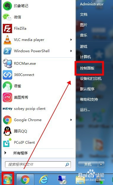 点击【起头】选择【节制面板】