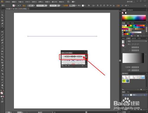 选中直线,点击【画笔界说】-【画笔库菜单】,点击【装饰】-【装饰文天职隔线】,弹出文天职隔线选项栏;