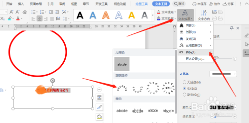 点击转换,选择“上弯弧”。