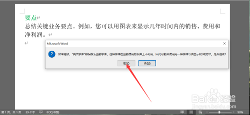 有一些人word可能没有下载该文字或者没有响应的设备,直接点击是即可。