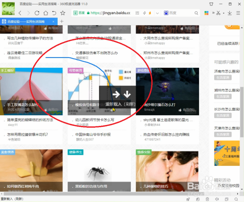 ●按住鼠标右键在页面上画一个“弧线”,页面会弹出“刷新”的提醒,然后页面就会主动刷新。