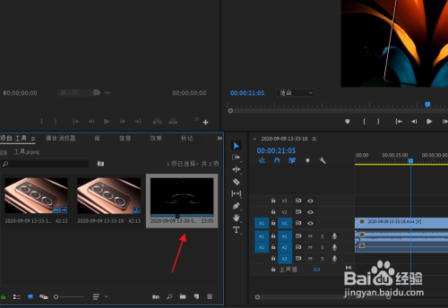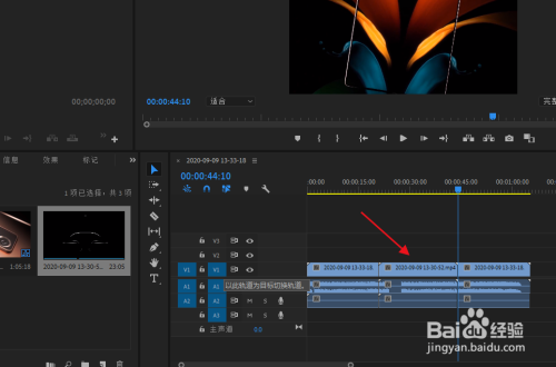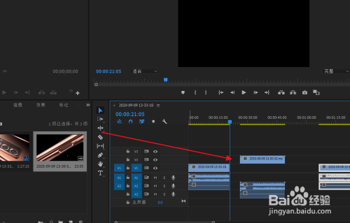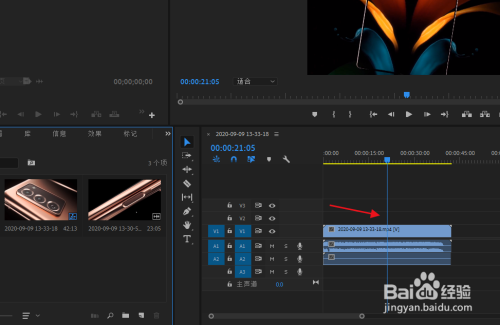 导入一段视频后将时候轴指标停在要插手另一段视频的位置。