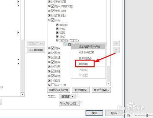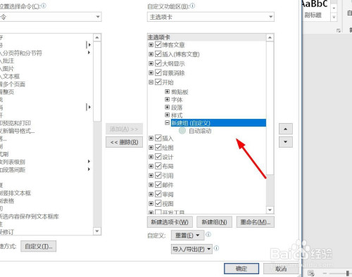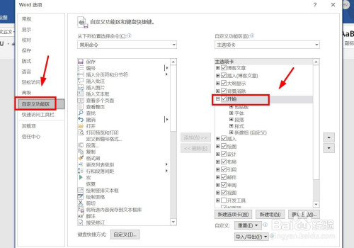 点击“自界说功能区”,然后找到菜单项,(这里为“起头”)。