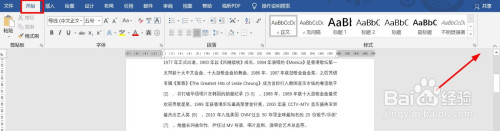 打开word文档。点击某个菜单栏(这里以“起头”菜单为例),查看已有的东西,可以发现有些东西不常用,想要删除。