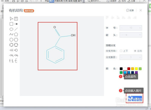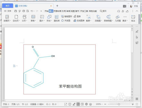 6、点击“插入图片”查看绘制完当作的苯甲酸布局图