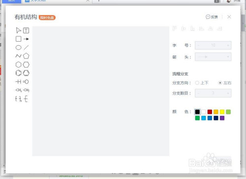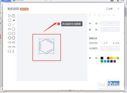苯甲酸分支=O绘制:点击左侧=O图标,选中后在右侧绘制区域——直另一端继续添加=O图案。