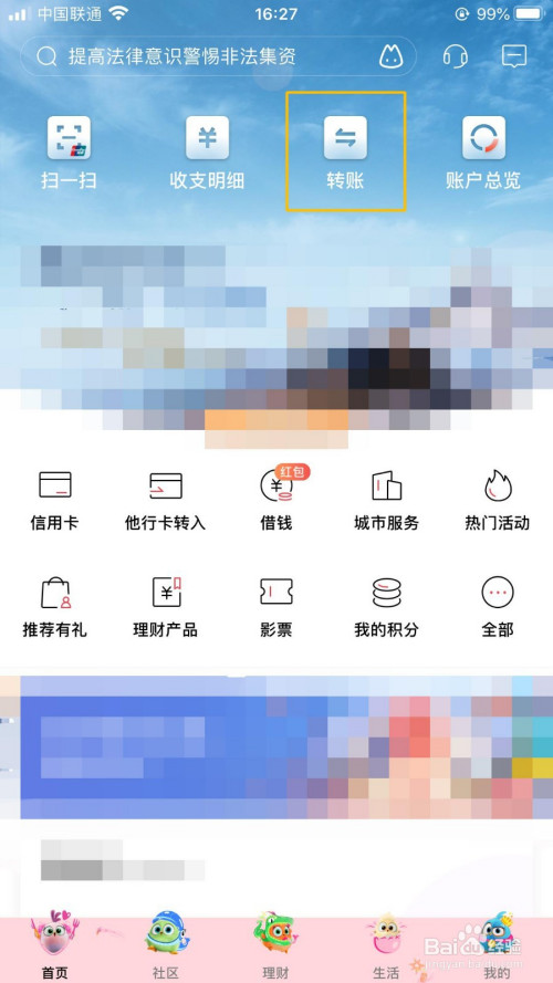 在“招商银行”本家儿界面中,选择“转账”图标。